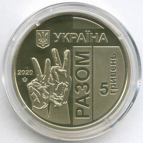 5 гривен 2020 год. Украина. Передовая (медики, коронавирус, врачи). BrUNC в капсуле