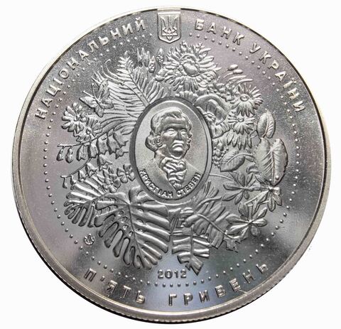 Монета 5 гривен, 200 лет Никитскому ботаническому саду, 2012 год, Украина.