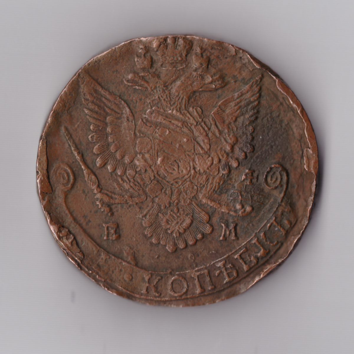 Реверс: В центре изображён вензель Екатерины II. Над вензелем - императорская корона. По обеим сторонам от вензеля цифры даты выпуска монеты: слева - «17», справа - «**». Вокруг центрального изображения, вдоль канта, изображён венок из лавровой и пальмовой ветвей, которые, в нижней части, перевязаны лентой на узел бантом.