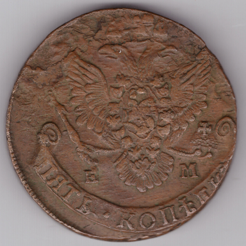 5 копеек 1784 год ЕМ Екатерина II VF+