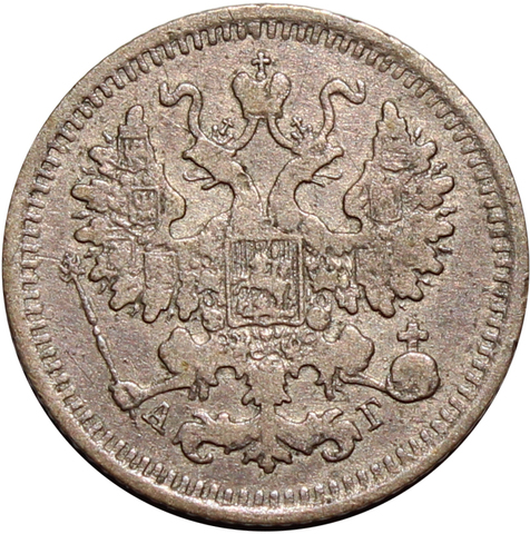 В центре изображен Малый Государственный Герб Российской империи - двуглавый орёл, головы которого увенчаны двумя коронами, третья, большая корона над ними. Все они соединены орденской лентой ордена Св. Апостола Андрея Первозванного. На груди орла расположен Московский герб, в щите изображен Георгий Победоносец с копьем поражающий дракона. Вокруг щита цепь ордена Св. Апостола Андрея Первозванного. На крыльях изображены гербы: Царства Казанского, Польского, Херсонеса Таврического, Астраханского, Сибирского, Грузинского и герб соединенных княжеств Киевского, Новгородского и Владимирского — по 4 на каждое крыло. В правой лапе орла – скипетр, в левой – держава. Под правой лапой – буква «А», под левой – буква «Г». Инициалы минцмейстера Аполлона Грасгофа. По окружности канта имеются рельефные элементы, выполненные в виде зубцов.