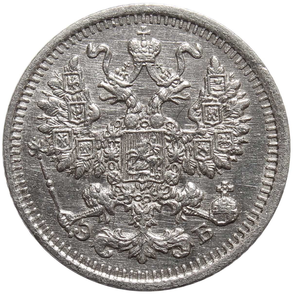 Аверс: в середине Малый Государственный Герб Российской империи, внизу вдоль края монеты слева и справа от хвоста орла инициалы минцмейстера «ЭБ» (Эликум Бабаянц).