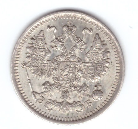 В центре изображен Малый Государственный Герб Российской империи - двуглавый орёл, головы которого увенчаны двумя коронами, третья, большая корона над ними. Все они соединены орденской лентой ордена Св. Апостола Андрея Первозванного. На груди орла расположен Московский герб, в щите изображен Георгий Победоносец с копьем поражающий дракона. Вокруг щита цепь ордена Св. Апостола Андрея Первозванного. На крыльях изображены гербы: Царства Казанского, Польского, Херсонеса Таврического, Астраханского, Сибирского, Грузинского и герб соединенных княжеств Киевского, Новгородского и Владимирского — по 4 на каждое крыло. В правой лапе орла – скипетр, в левой – держава. Под правой лапой – буква «Э», под левой – буква «Б». Инициалы минцмейстера Эликума Бабаянца. По окружности канта имеются рельефные элементы, выполненные в виде зубцов.