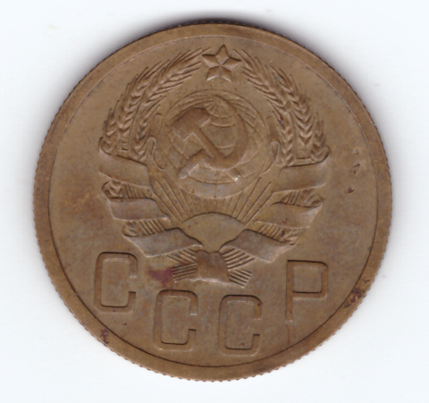 Аверс: Штемпель 1. к левому лучу звезды примыкает ость, герб СССР - 7 витков ленты.