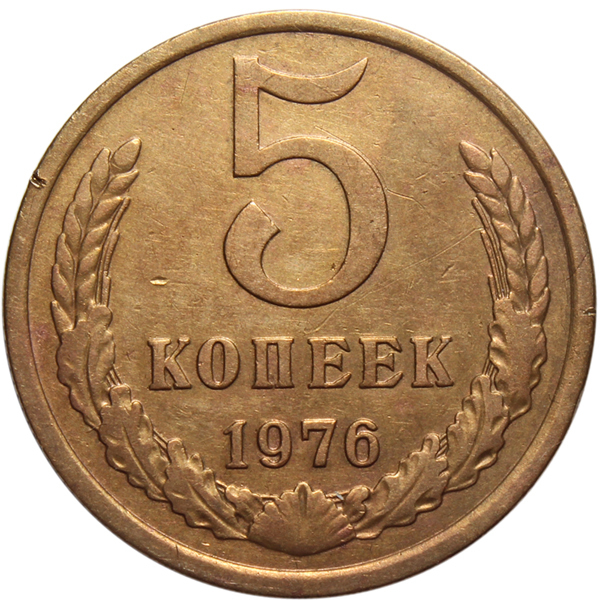 5 копеек 1976 года. VF-XF. Федорин 122