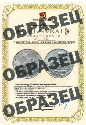 В 2002 году среди монет 5 копеек появляется интересная разновидность - «без обозначения монетного двора». На монетах, выпущенных на ММД, отсутствует буква «М», обозначающая место чеканки. Ясно, что это, по сути, производственный брак, каким-то образом в производство попал штемпель, на который не нанесли обозначение монетного двора и им успели отчеканить достаточно большое количество монет. Но, тем не менее, эта монета внесена практически во все каталоги, как разновидность и среди коллекционеров пользуется большой популярностью.