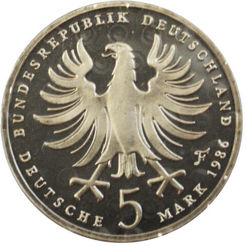 5 марок. 200 лет со дня смерти Фридриха II Великого. (F) Германия. Медноникель. 1986 г. PROOF