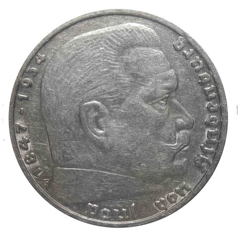 После смерти президента Пауля фон Гинденбурга в память о генерал-фельдмаршале в оборот поступили серебряные монеты достоинством 5 марок. По своей сути они представляли собой памятные монеты, однако в связи с отсутствием новых подобных монет, их продолжали чеканить вплоть до начала II мировой войны. В 1940 году были созданы пробные монеты с изображением Гитлера. Однако их выпуск был отложен до победы в войне, и в оборот они не поступили.