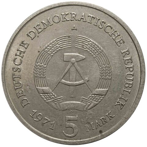 5 марок. Бранденбургские Ворота. (A). Германия-ГДР. Медноникель. 1971 год. XF