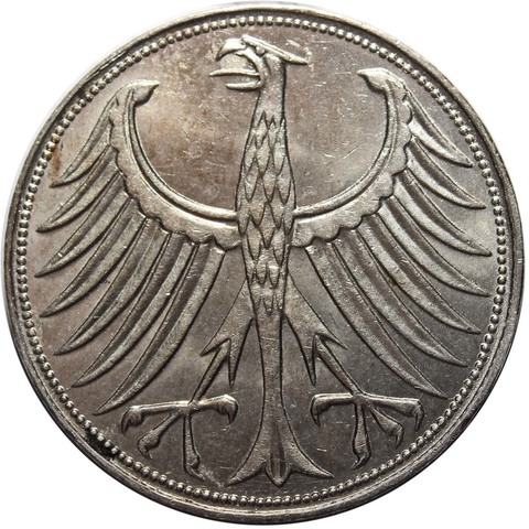 5 марок. Германия. (J). Серебро. 1951 год. XF-AU