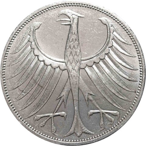 5 марок. Германия. (J). Серебро. 1974 год. XF-AU