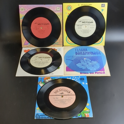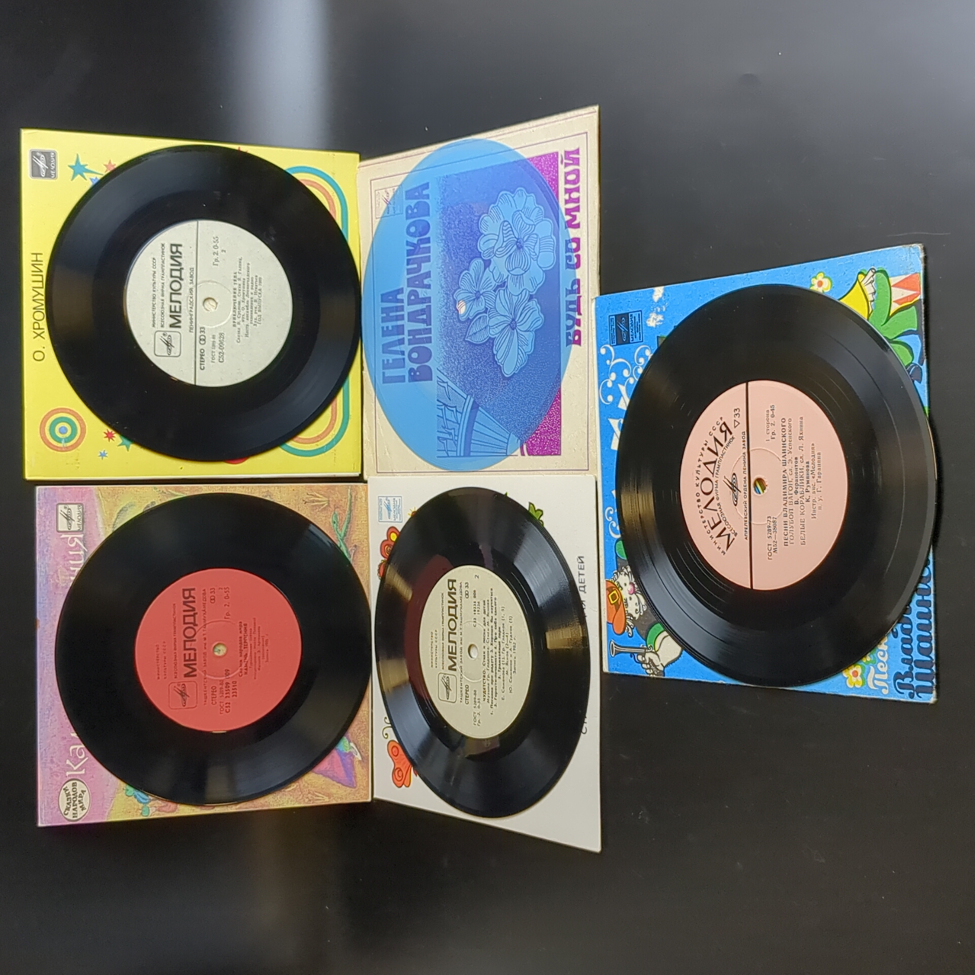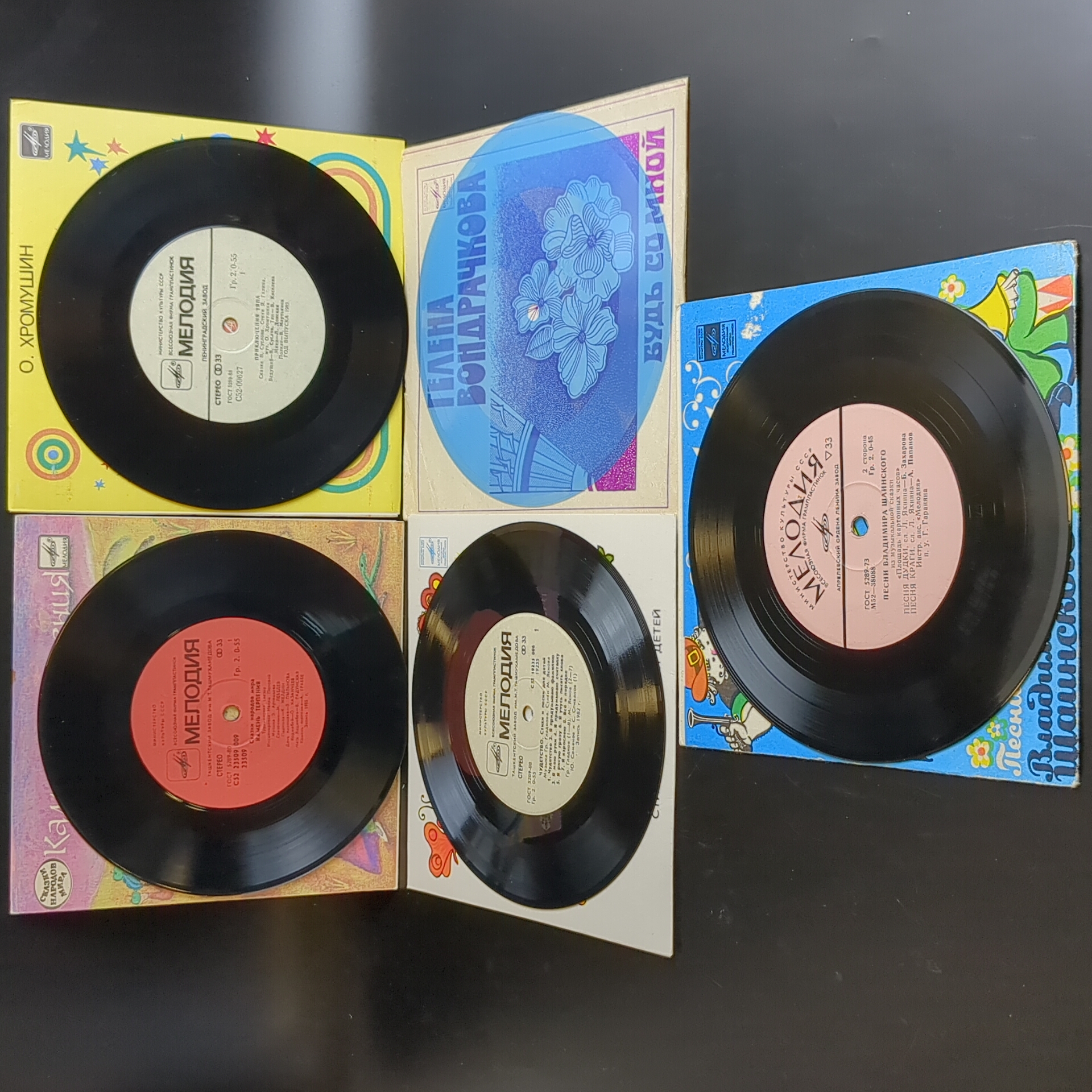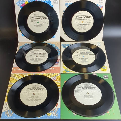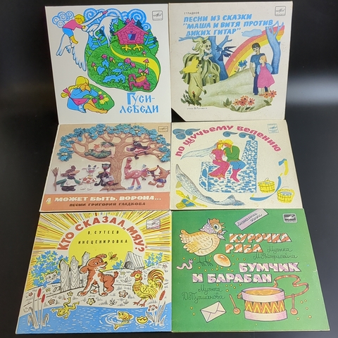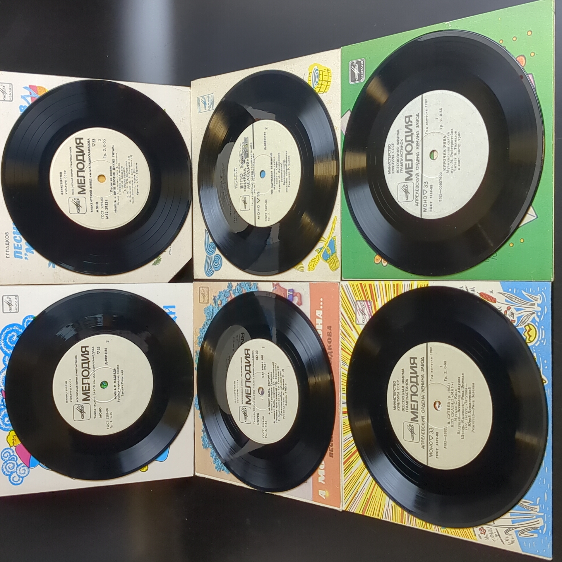 №5 Набор из 10 виниловых пластинок 7 дюймов миньоны детские сказки и песни: Гуси - лебеди / / Кто сказал Мяу? / Курочка Ряба / Бумчик и барабан / Приключения Тяпа и др.