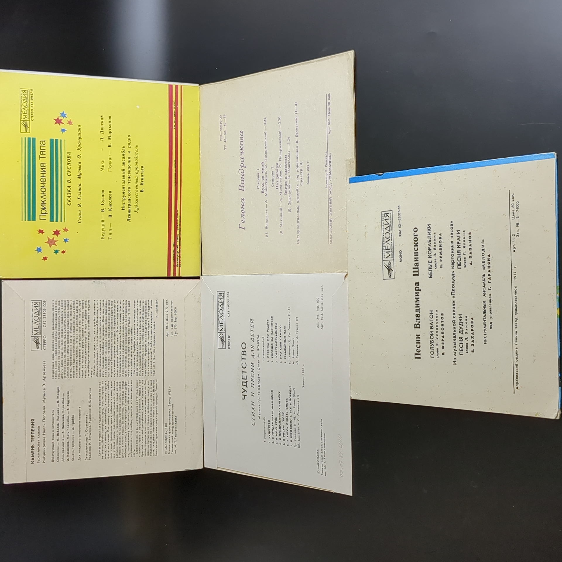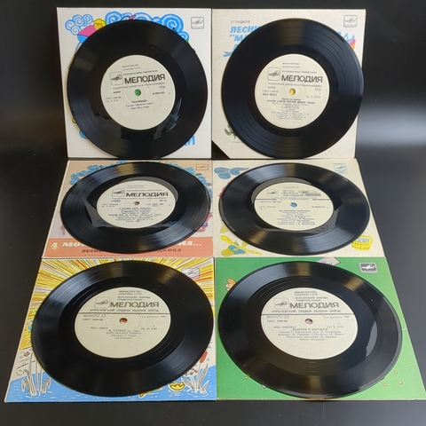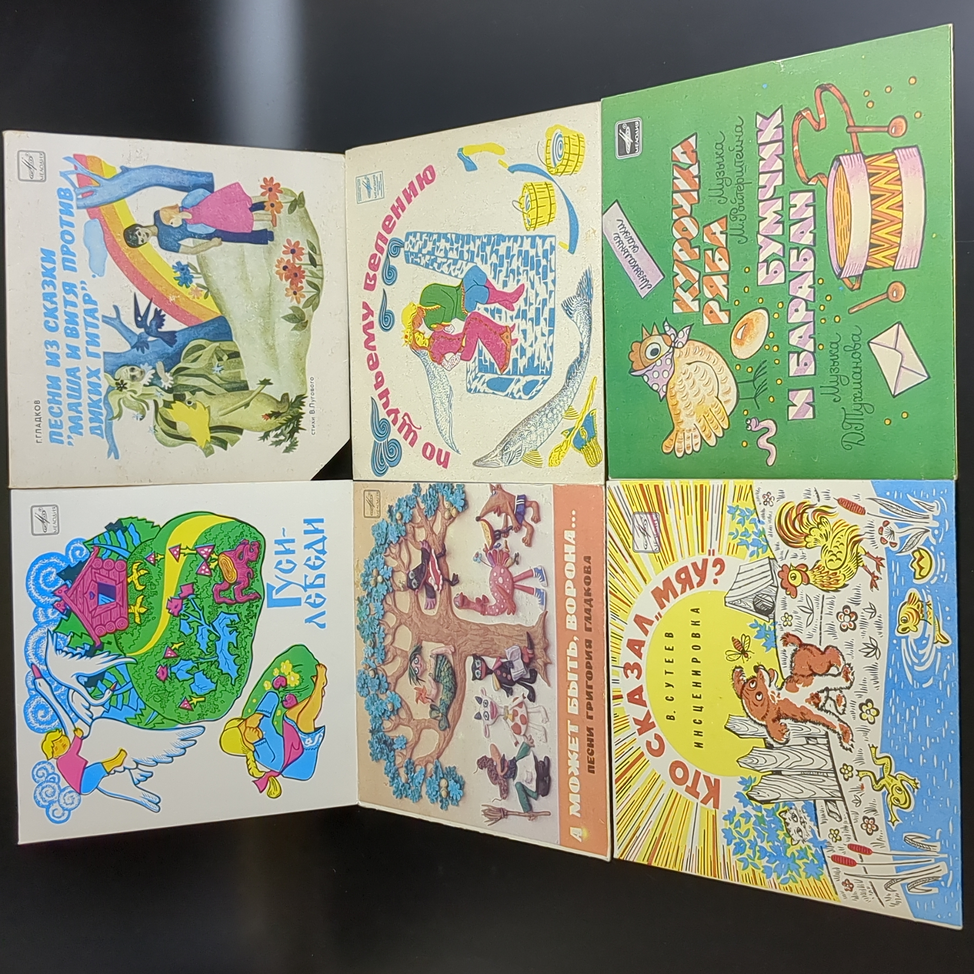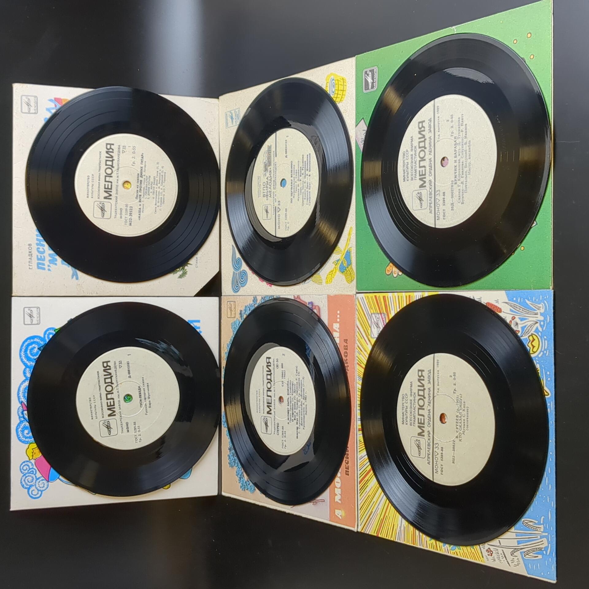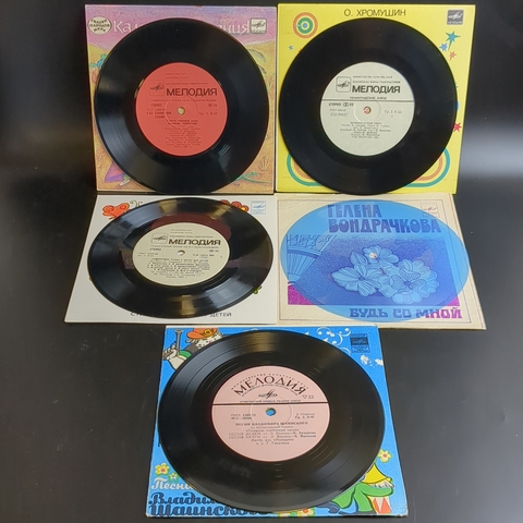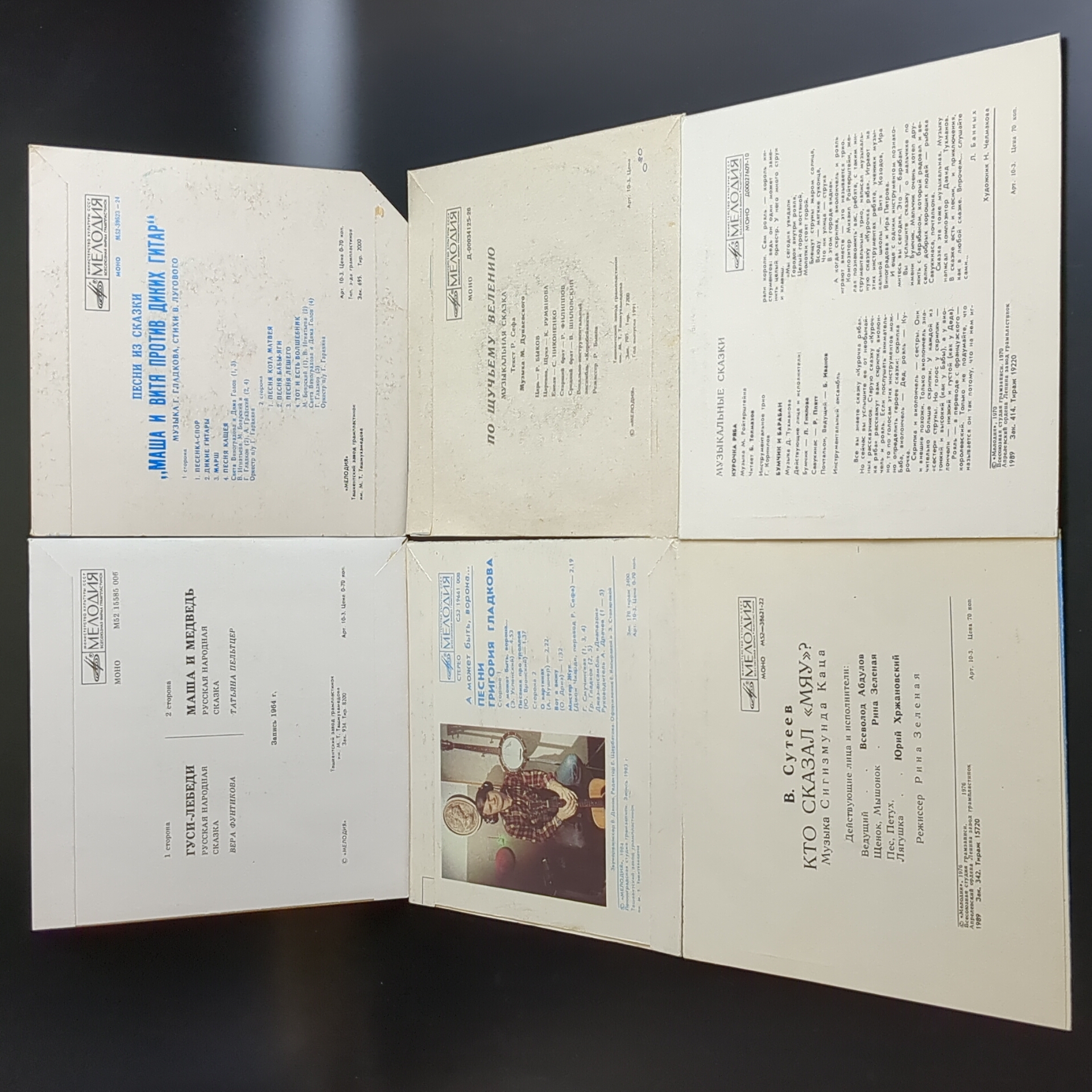 №5 Набор из 10 виниловых пластинок 7 дюймов миньоны детские сказки и песни: Гуси - лебеди / / Кто сказал Мяу? / Курочка Ряба / Бумчик и барабан / Приключения Тяпа и др.