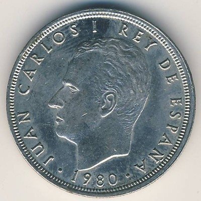 5 песет 1980 год. Испания. Чемпионат мира по футболу в Испании 1982. Футбол. Спорт. 81 внутри звезды. XF/aUNC/UNC