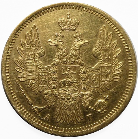5 рублей 1851 года СПБ-АГ. Золото. Сохранность отличная.