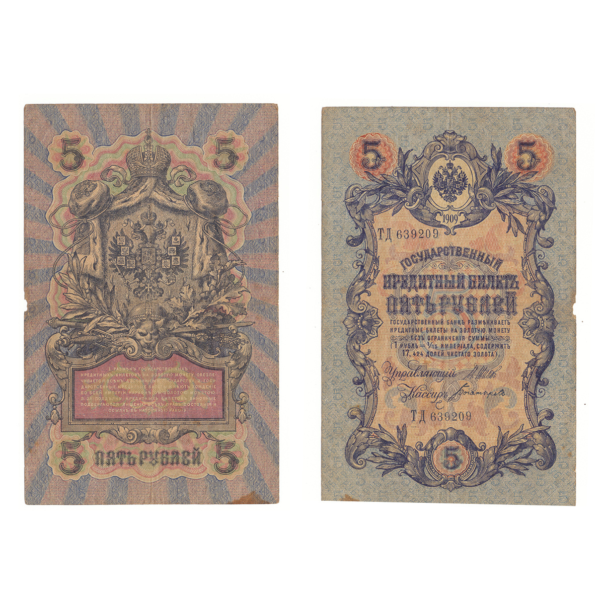 5 рублей 1909 г. Шипов Богатырев. Царская Россия. Длинный номер №. Серия: -ТД- F