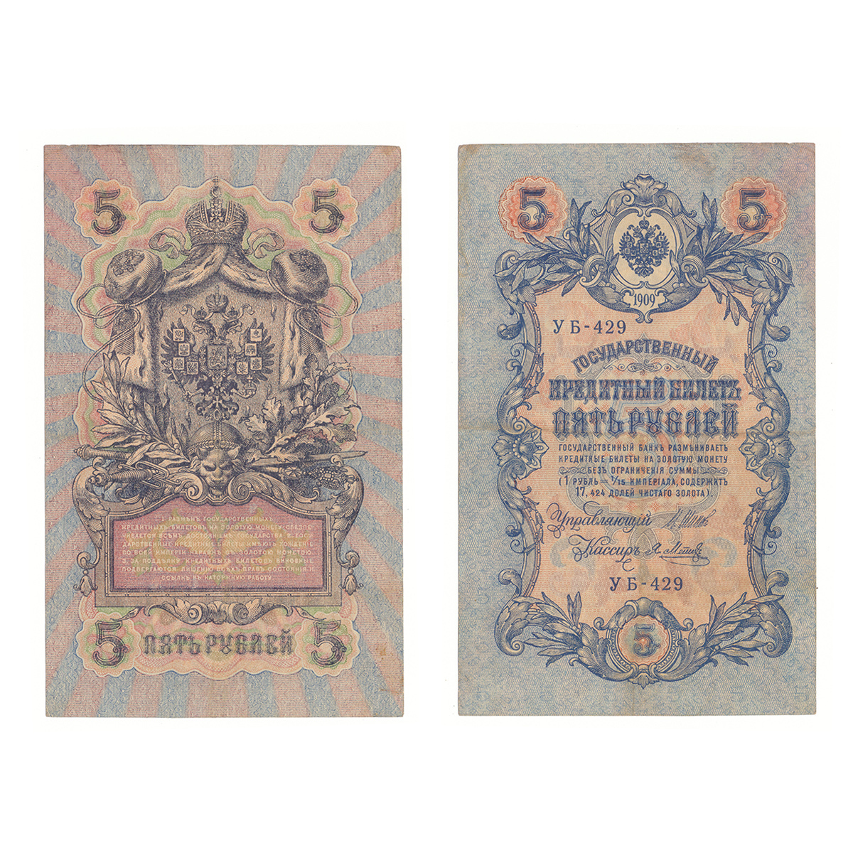 5 рублей 1909 г. Шипов Я Метц. Короткий номер №. УБ-429. VF+