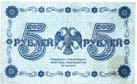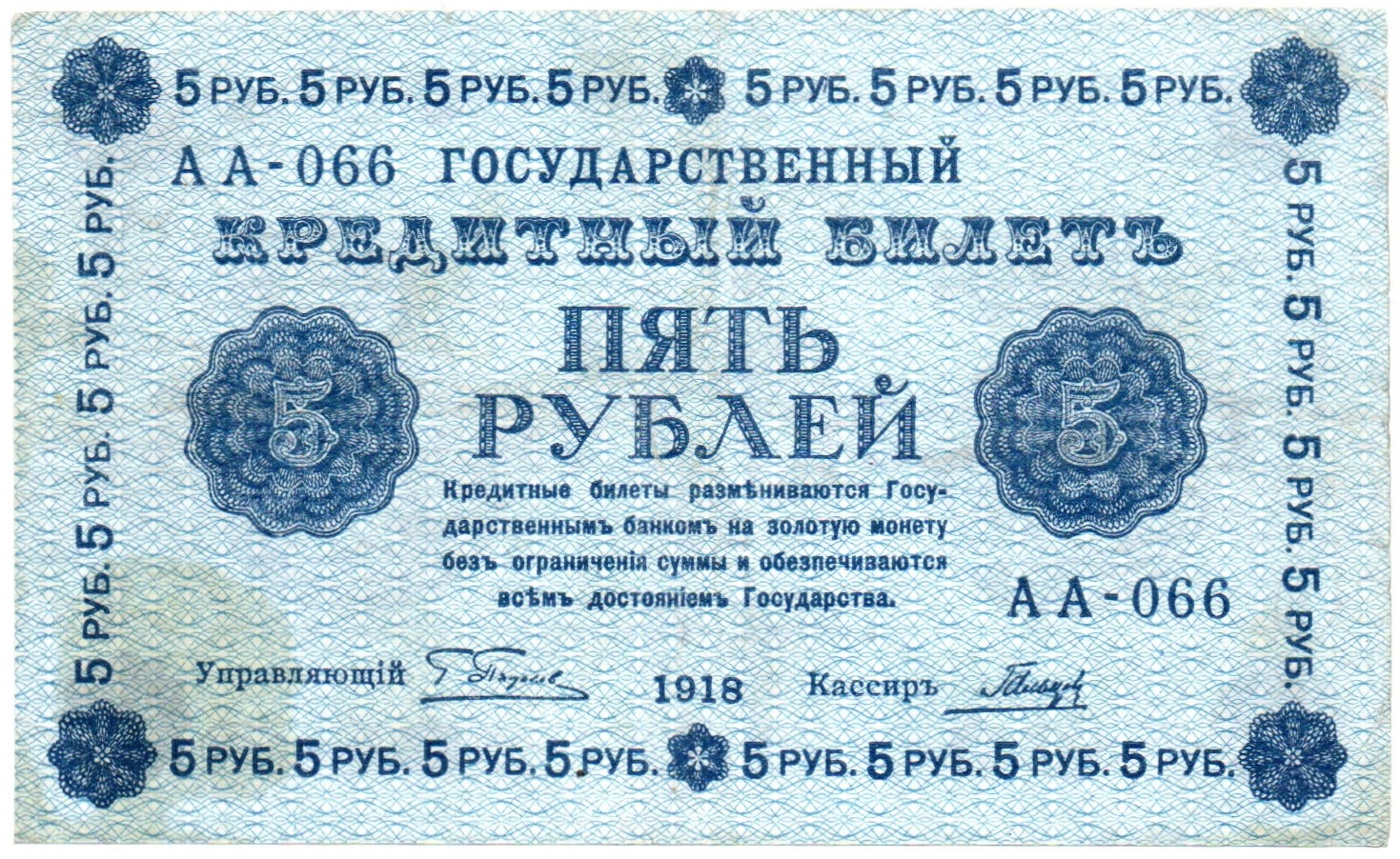 5 рублей 1918 г. Кредитный билет РСФСР. АА-066