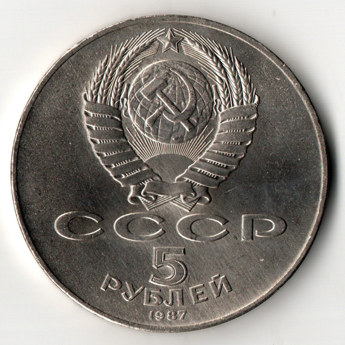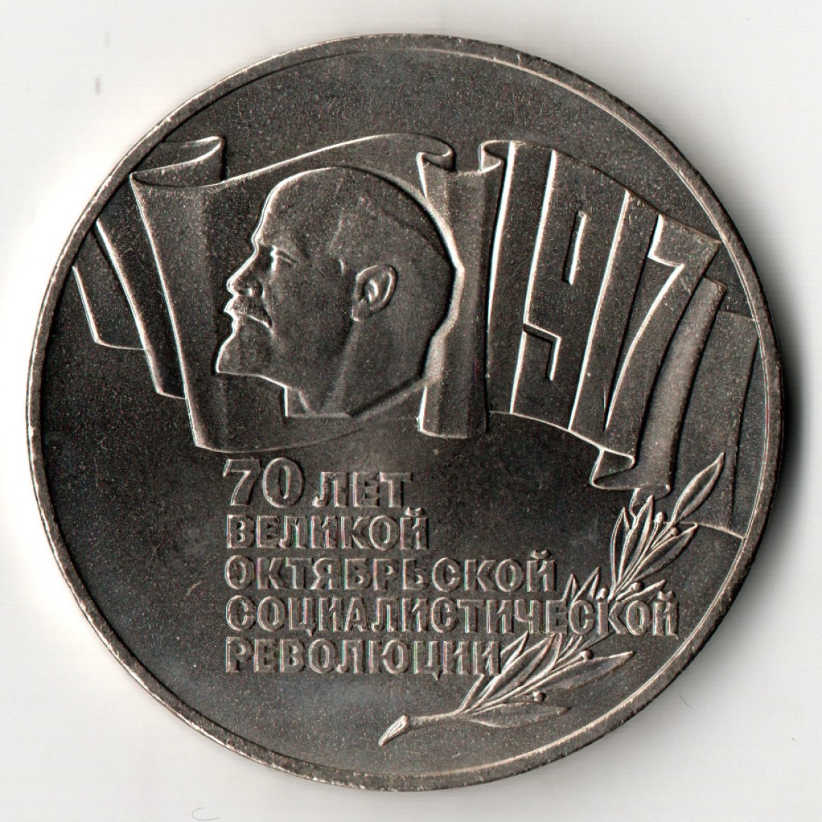 5 рублей 1987 год - 70 лет Великой Октябрьской революции - ВОСР, шайба