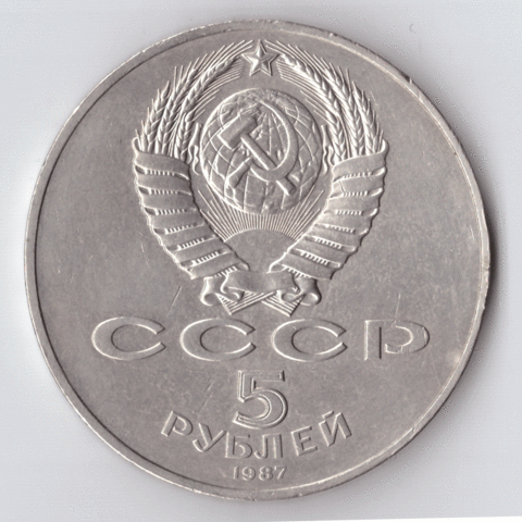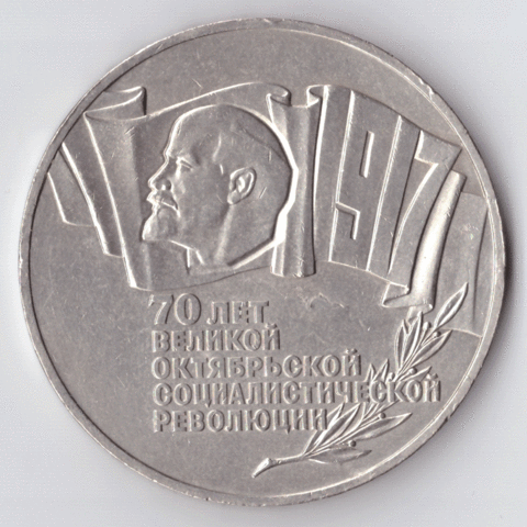 5 рублей 1987 года 70 лет Великой Октябрьской Социалистической революции. (С заводским браком - отслоение металла) XF-AU