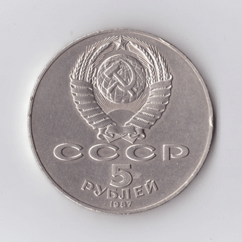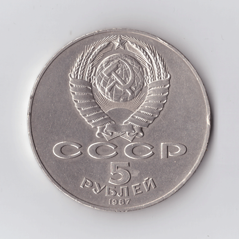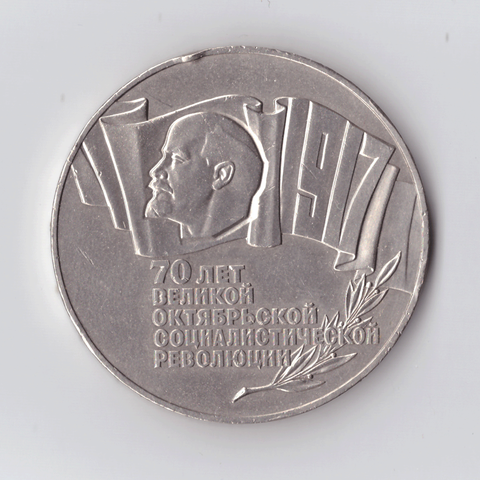 5 рублей 1987 года 70 лет Великой Октябрьской Социалистической революции (Шайба). Есть забоинки на гурте XF-