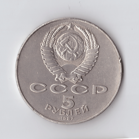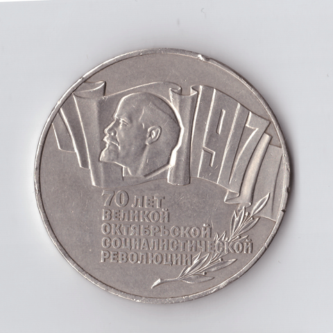 5 рублей 1987 года 70 лет Великой Октябрьской Социалистической революции (Шайба). Есть забоинки на гурте XF- №2