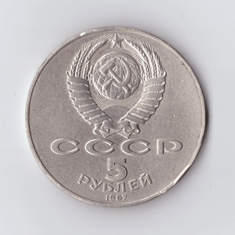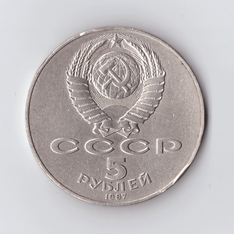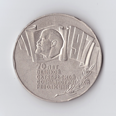 5 рублей 1987 года 70 лет Великой Октябрьской Социалистической революции (Шайба). Есть забоинки на гурте XF- №4