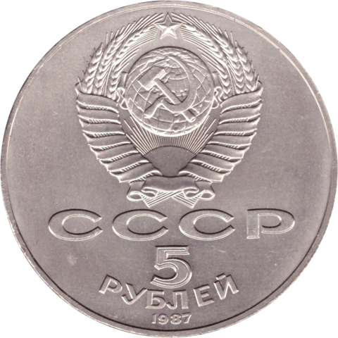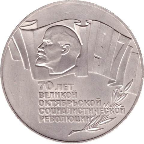5 рублей 1987 года 70 лет Великой Октябрьской Социалистической революции (Шайба) XF-AU