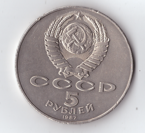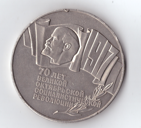 5 рублей 1987 года 70 лет ВОСР (Шайба). Есть забоинки на гурте XF-AU