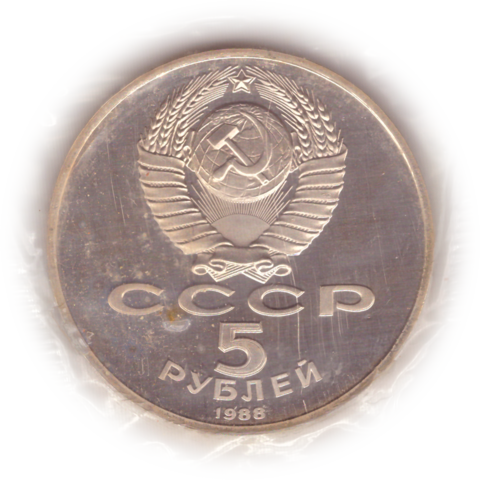 5 рублей 1988 г. Памятник "Тысячелетие России" Новгород. Киев. СССР (Proof) Пруф. Родная запайка.