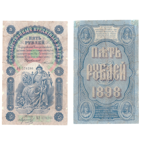 Банкнота 5 рублей 1898 года Российская империя . Государственный кредитный билет.