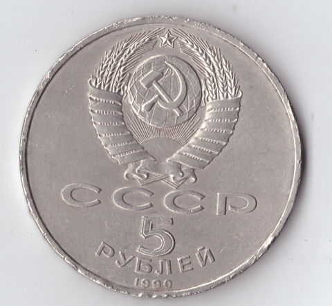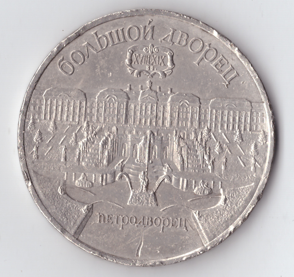 5 рублей 1990 года Большой дворец в Петродворце (есть забоинки) VF-