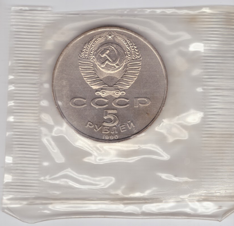 5 рублей 1990 года Большой дворец в Петродворце (В родной запайке) АЦ №5