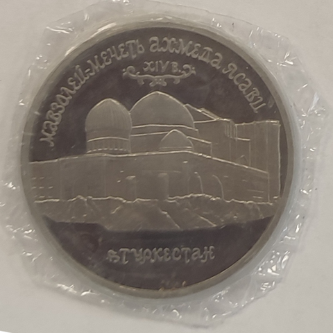 5 рублей 1992 года мавзолей - мечеть Ахмеда Ясави (в запайке) PROOF