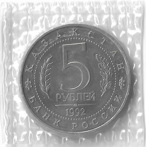 5 рублей 1992 ЛМД ''Мавзолей-мечеть Ахмеда Ясави в г. Туркестане'', в родной запайке (АЦ)