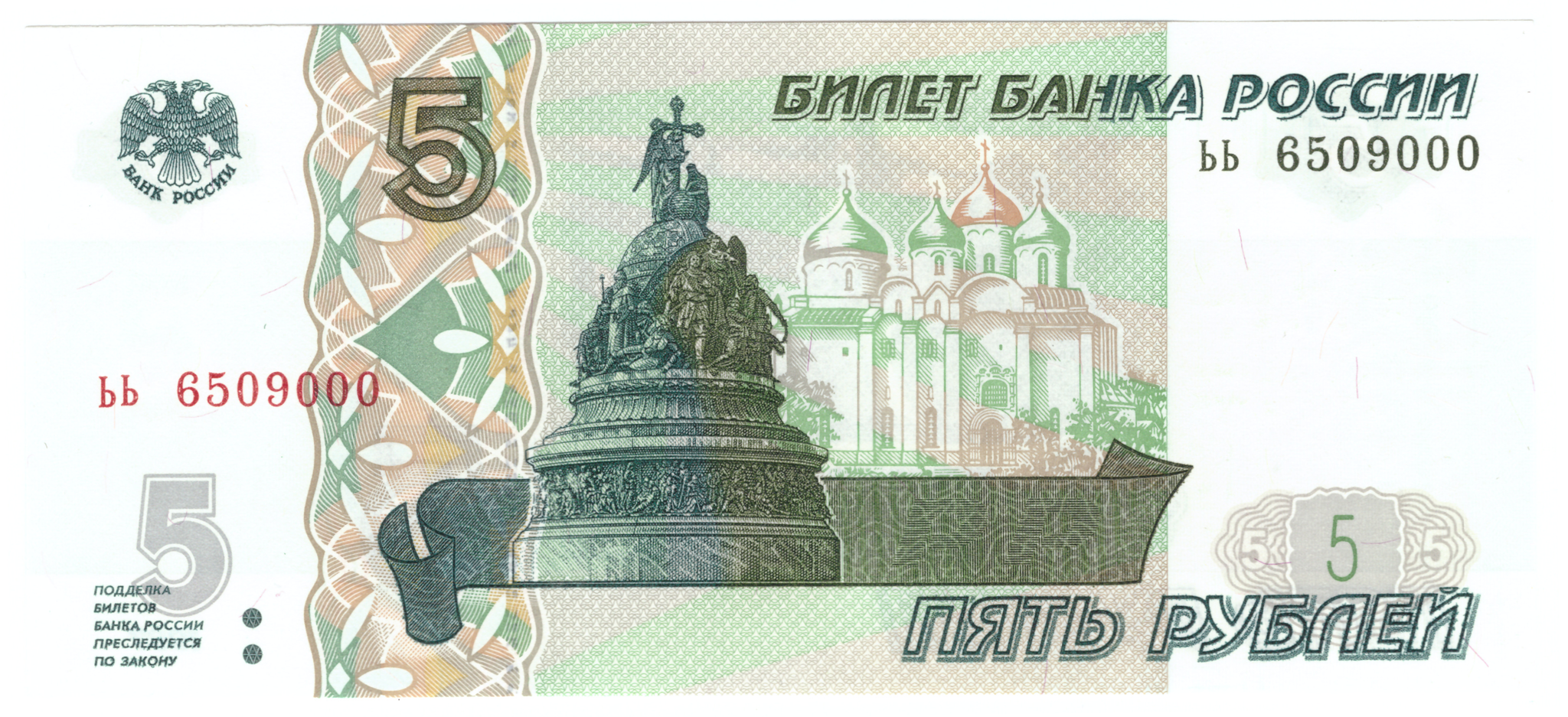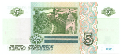 5 рублей 1997 банкнота UNC пресс Красивый номер ьь ***000