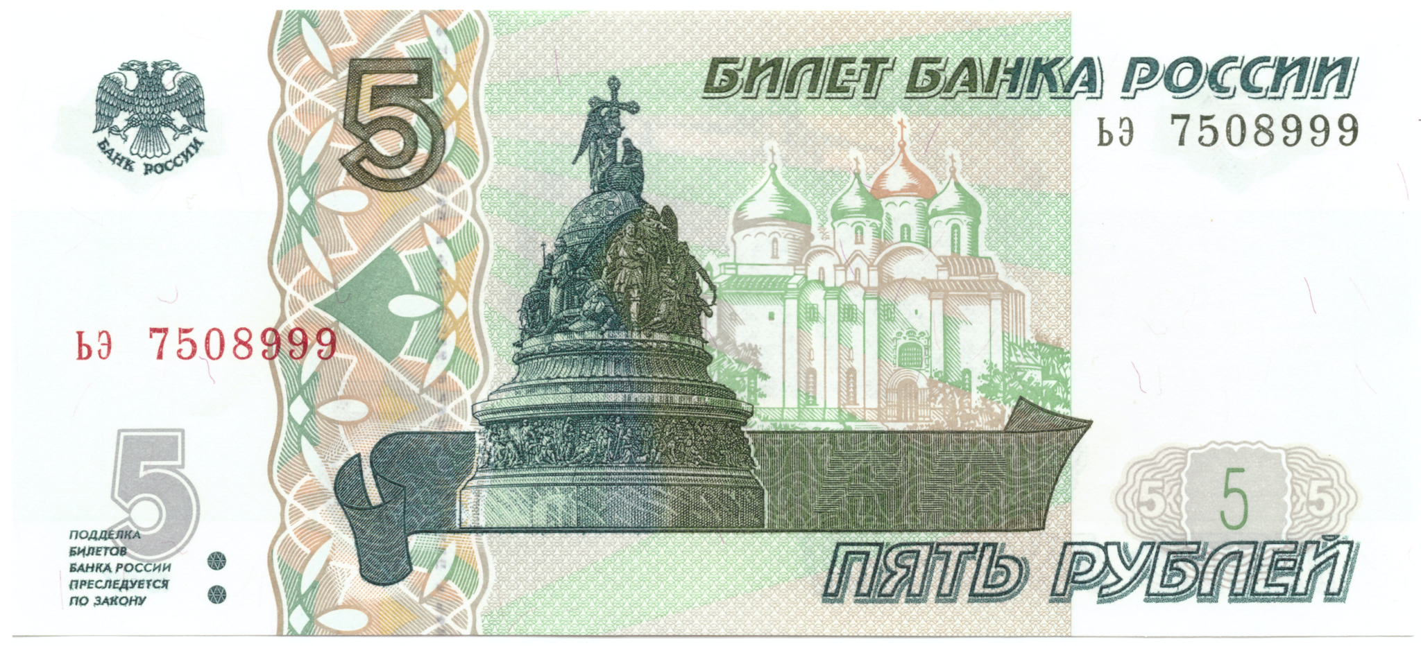 5 рублей 1997 банкнота UNC пресс Красивый номер ЬЬ ***666