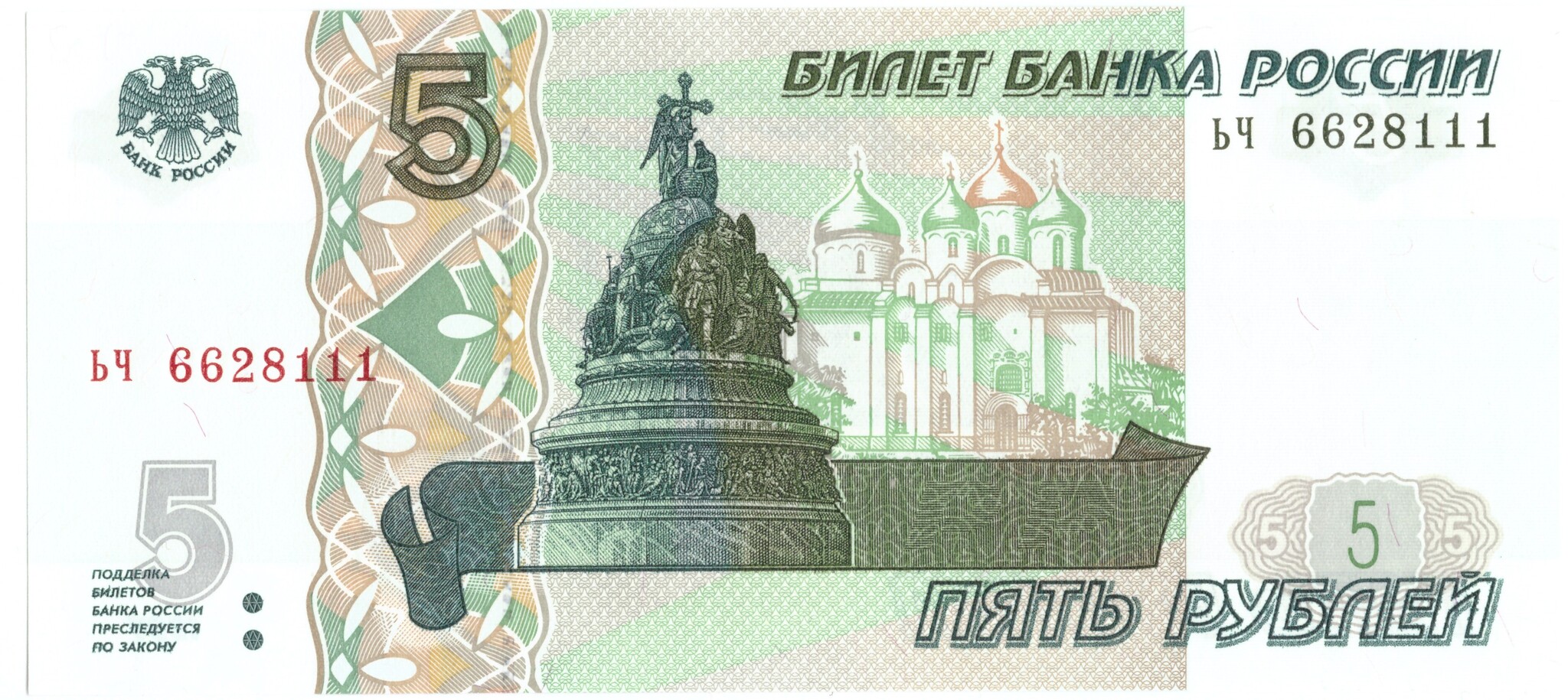 5 рублей 1997 банкнота UNC пресс Красивый номер ЬЧ ***111