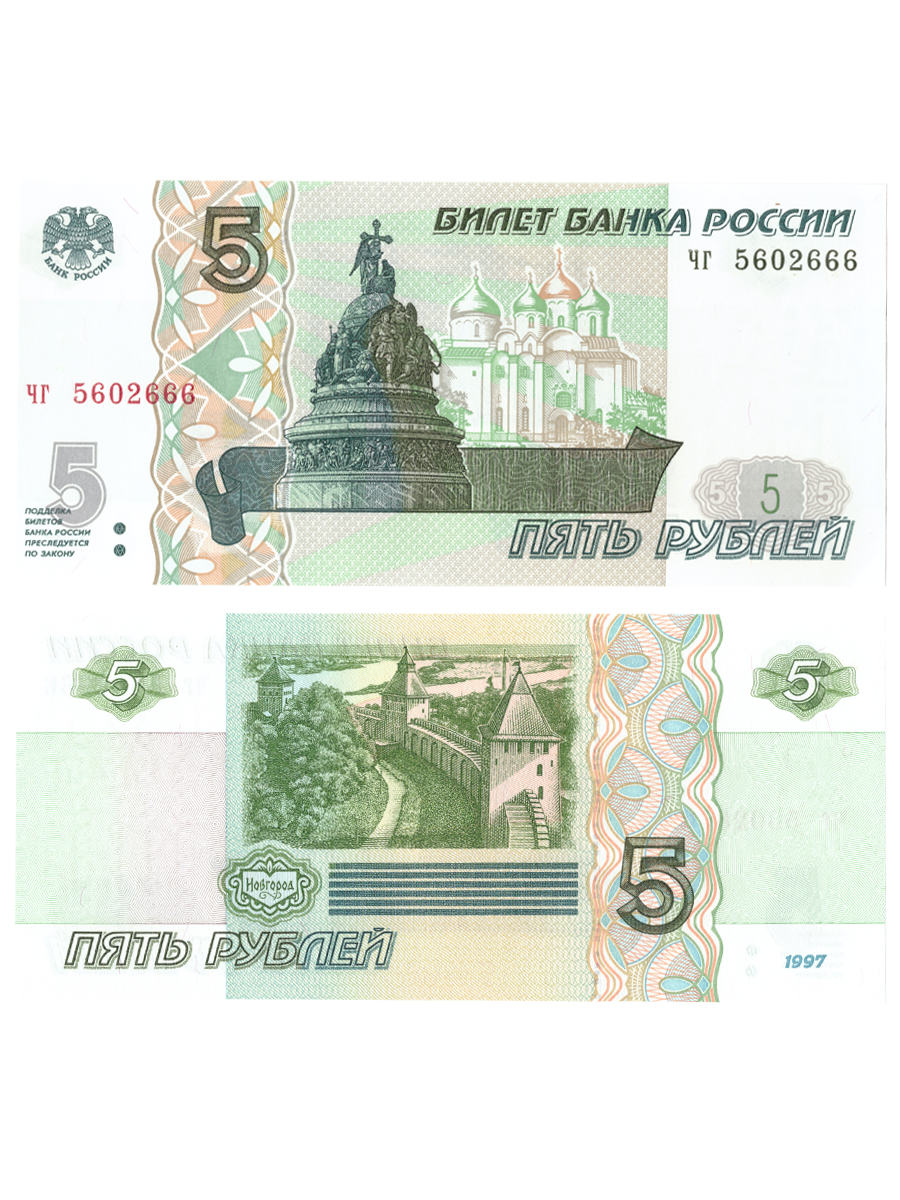 5 рублей 1997 банкнота UNC пресс Красивый номер чг****666