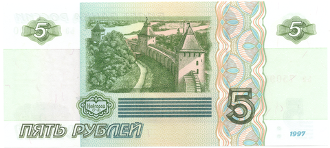 5 рублей 1997 банкнота UNC пресс Красивый номер ЬЭ ***000