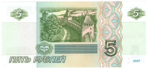 5 рублей 1997 банкнота UNC пресс Красивый номер ЬЭ ***222