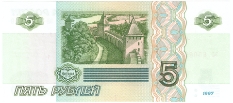 5 рублей 1997 банкнота UNC пресс Красивый номер эа ***999