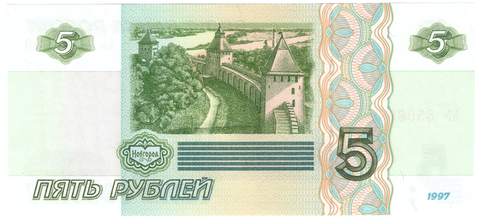 5 рублей 1997 банкнота UNC пресс Красивый номер эа ***999