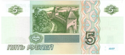 5 рублей 1997 банкнота UNC пресс Красивый номер ЭВ ***444