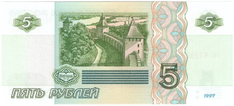 5 рублей 1997 банкнота UNC пресс Красивый номер ЭВ ***555