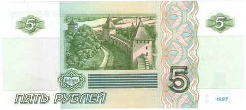5 рублей 1997 банкнота UNC пресс Красивый номер ЭВ *555000
