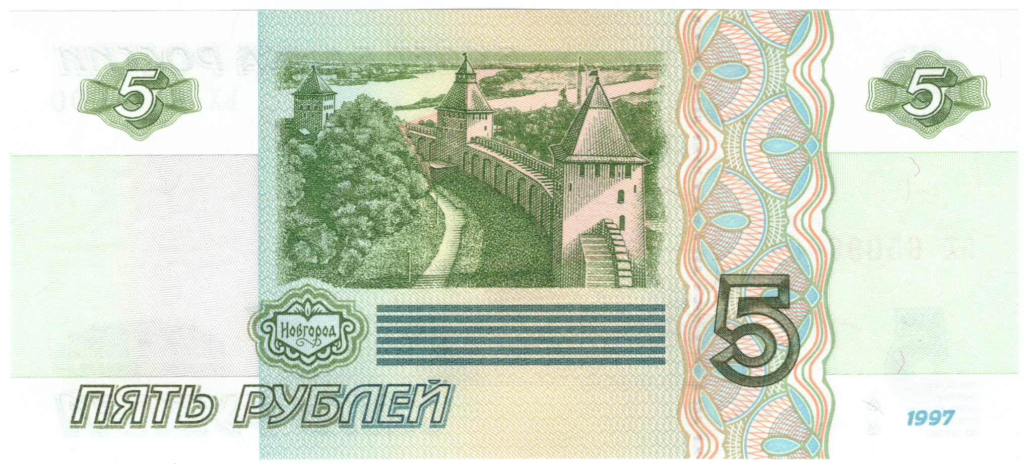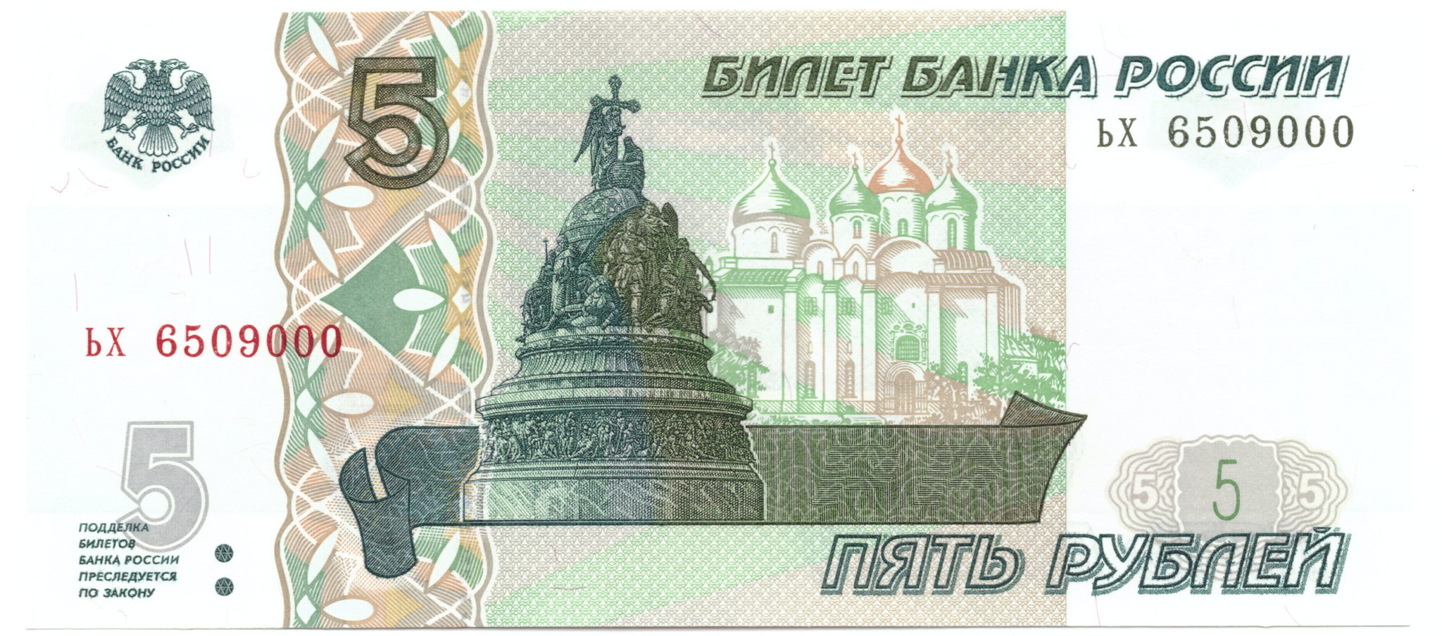 5 рублей 1997 банкнота UNC пресс Красивый номер ЬХ ***000