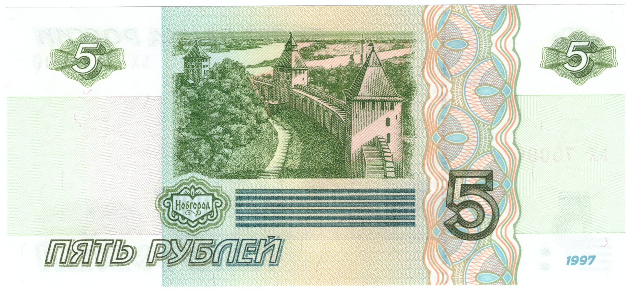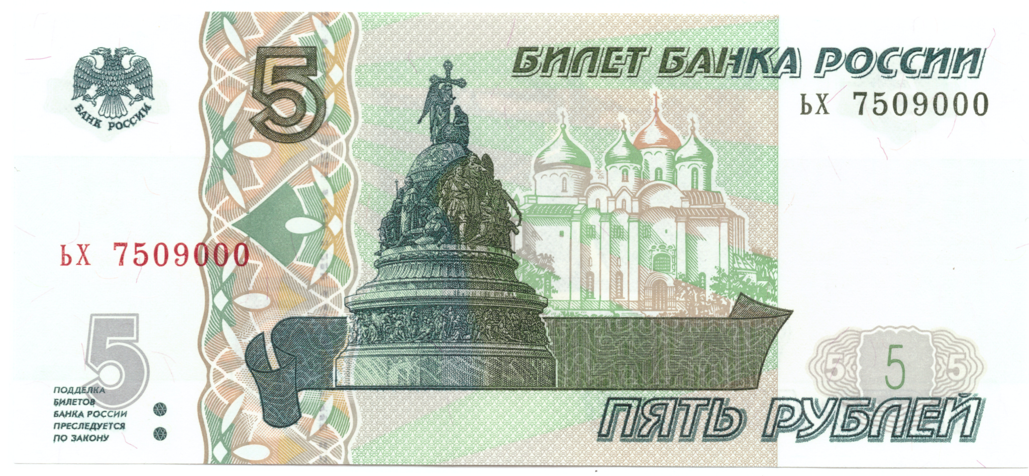 5 рублей 1997 банкнота UNC пресс Красивый номер ЬХ ***000