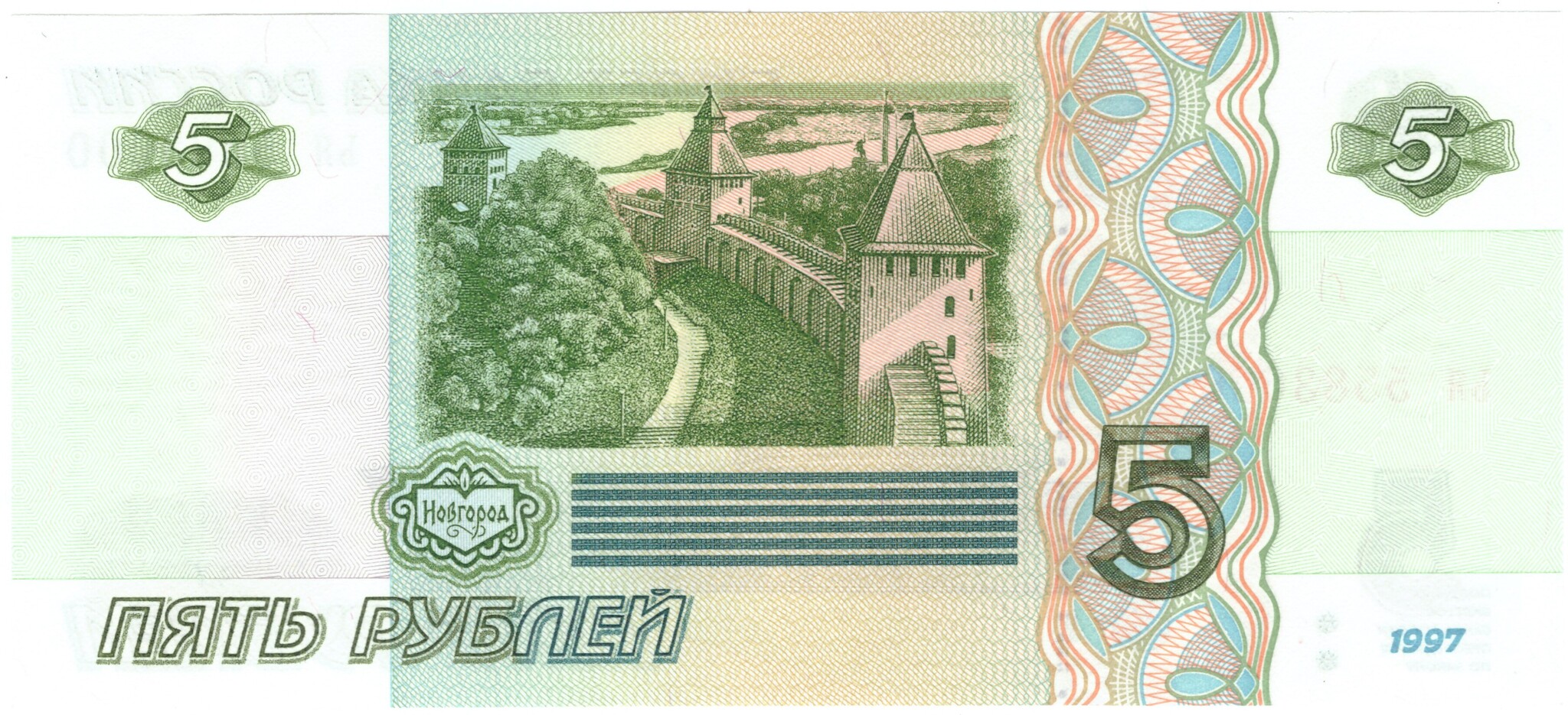 5 рублей 1997 банкнота UNC пресс Красивый номер ЬХ ***222