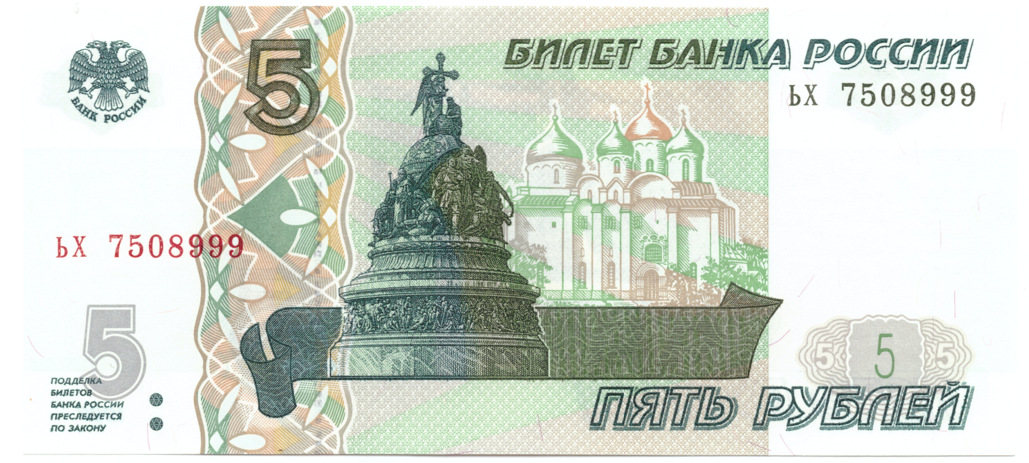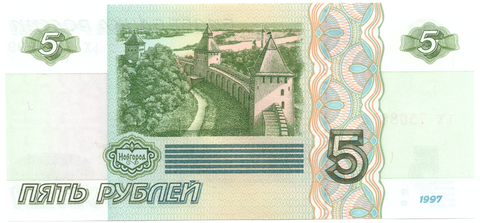 5 рублей 1997 банкнота UNC пресс Красивый номер ЬХ ***999